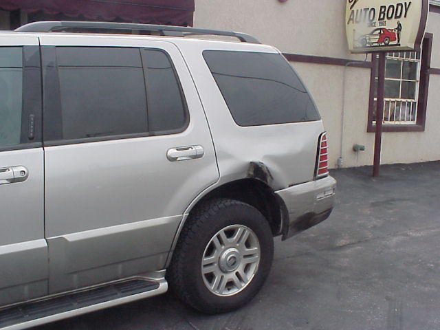 Notice straightness of repaired quarter panel, perfectly shaped wheel arch and body line, perfect high-metallic color match.
